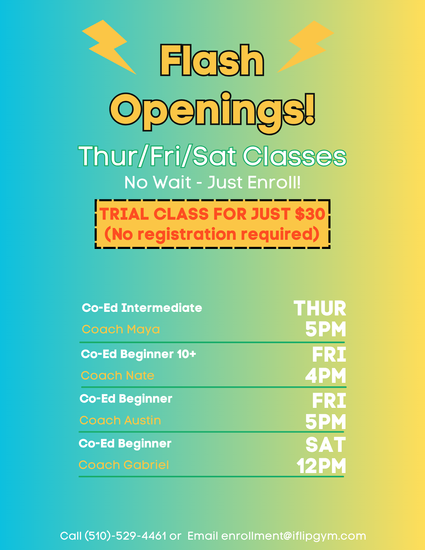 ⚡ New Flash Class Openings just dropped — enroll now in select classes with NO waitlist